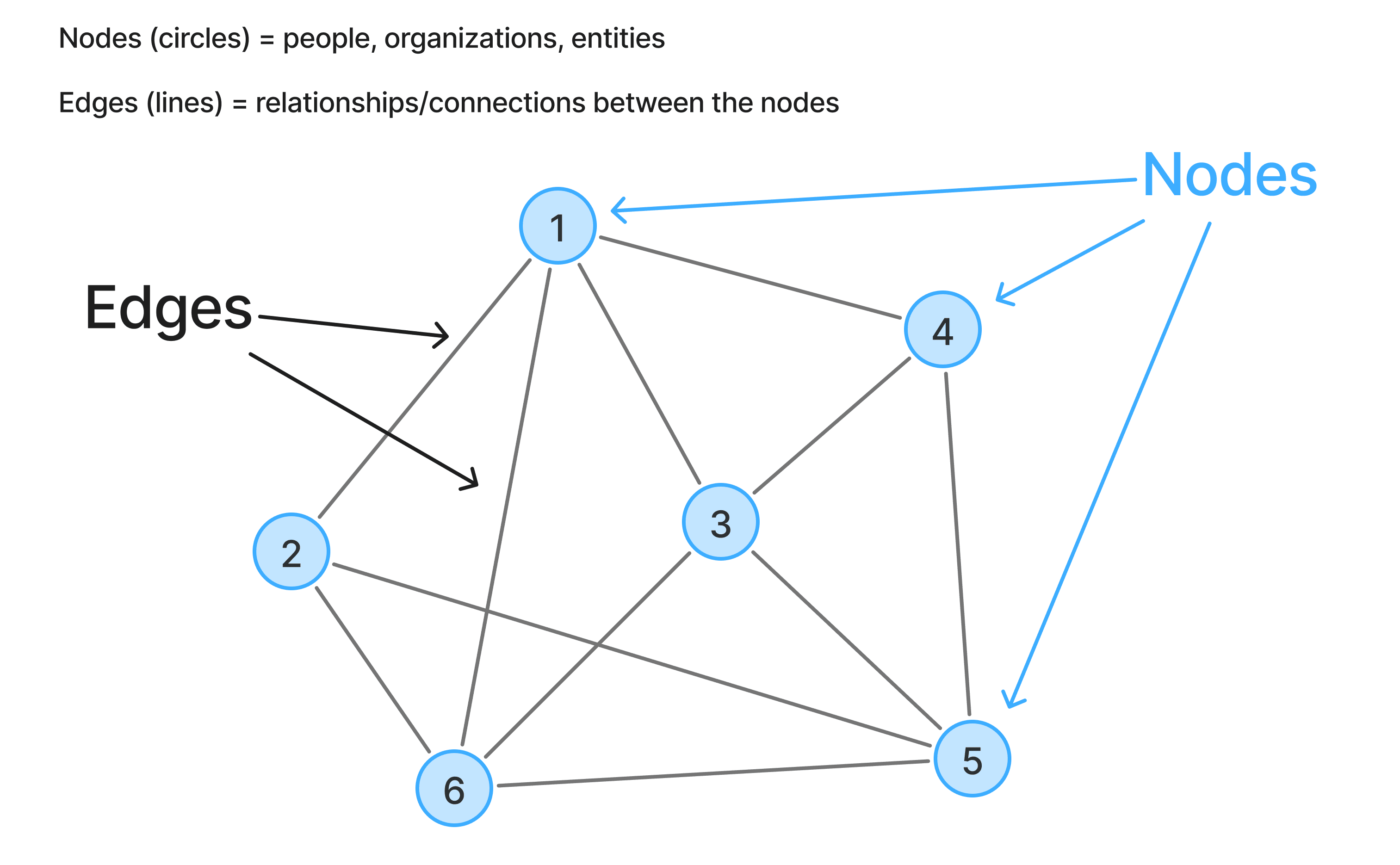Data is represented as nodes (people, organizations, entities) and edges (relationships between them).